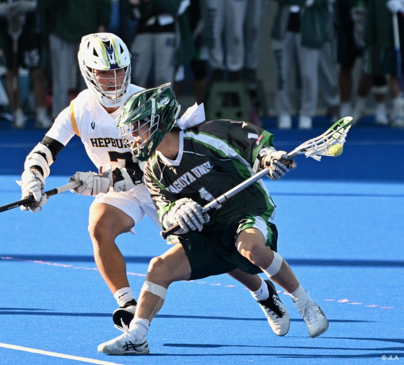 「日清食品presents第16回ラクロス全日本大学選手権大会」(以下、全学)男子準決勝は、1回戦をサドンビクトリーで勝利した明治学院大学(以下、明学大)と、1回戦で北海道大学との勝負を制した名古屋大学(以下、名大)の戦い。前回大会準優勝の明学大か、打倒関東に燃える名大か、両者の意地がぶつかり合う。