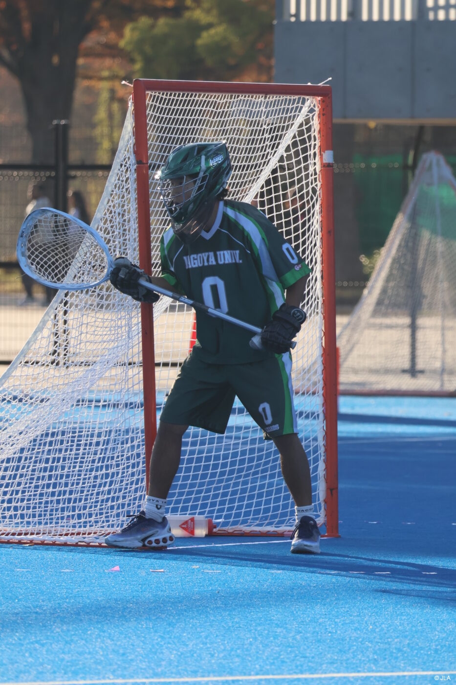 この試合、名大DF陣の要となったのがゴーリー#0松田涼平選手です。均衡した時間帯に相手の決定機を次々と止め、4Qで明学に流れが傾きかけた場面でもチームを支えるセーブを見せ続けました。