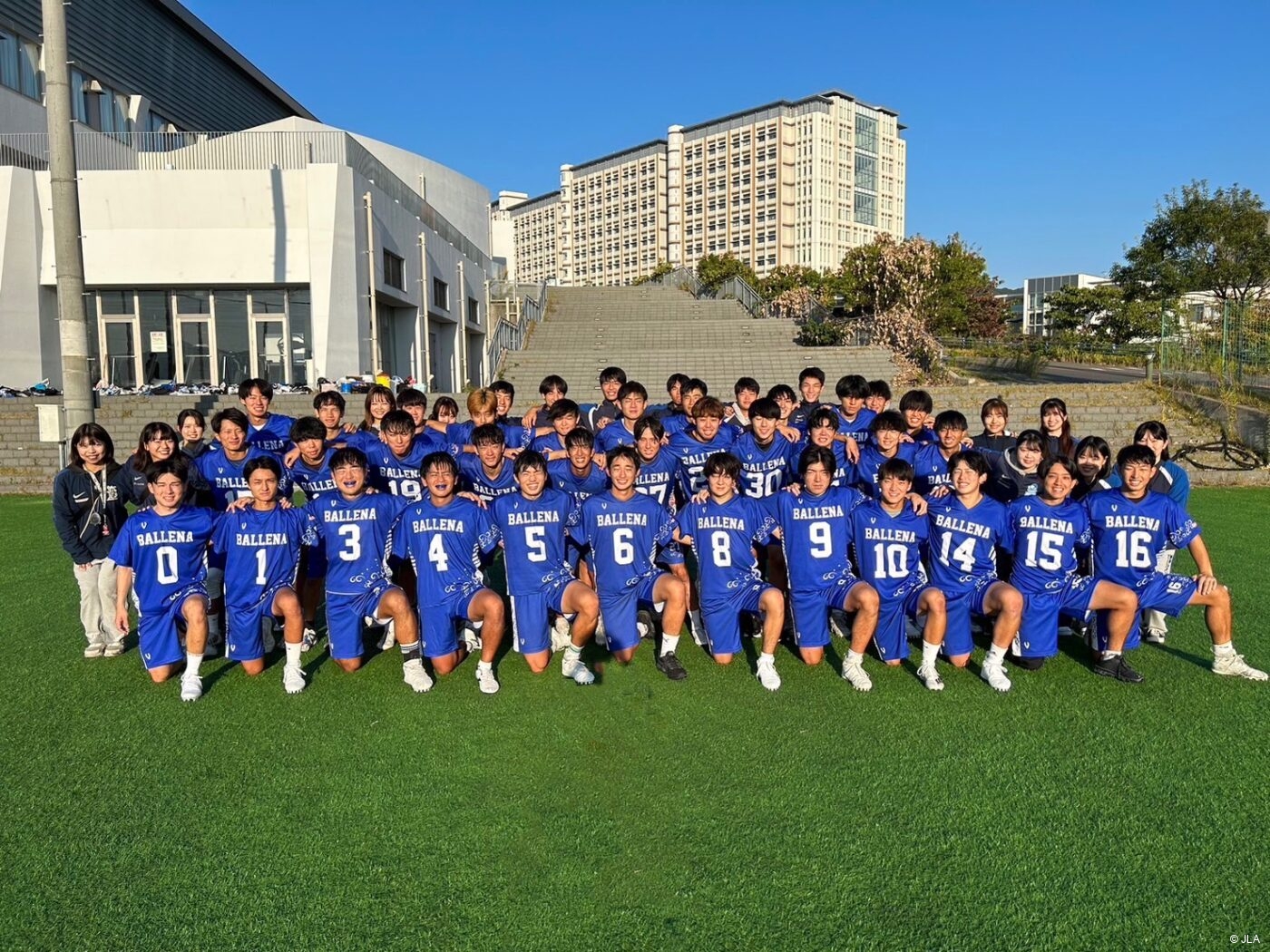 ここ数年九州大学は他地区のチームや社会人チームとの試合を積極的に行い、より高いレベルのラクロスと接しチーム内で切磋琢磨し努力を積み重ねてきました。今年のスローガン「DIVE」はより深く考え、より深く集中し、さらに積極的に挑戦し続けるという意味を込めたものです。これまで積み上げてきたものを全力で出し切れるように九州から全国へ自分たちのラクロスを波響させていきます!